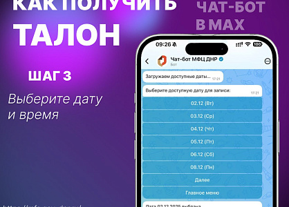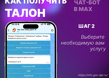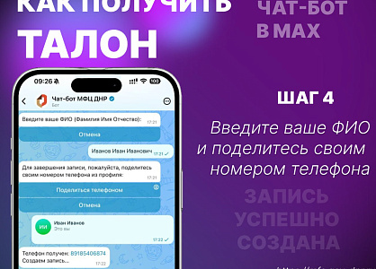 Чат-бот по ссылке. (https://max.ru/mfc_dnr_max_bot)
